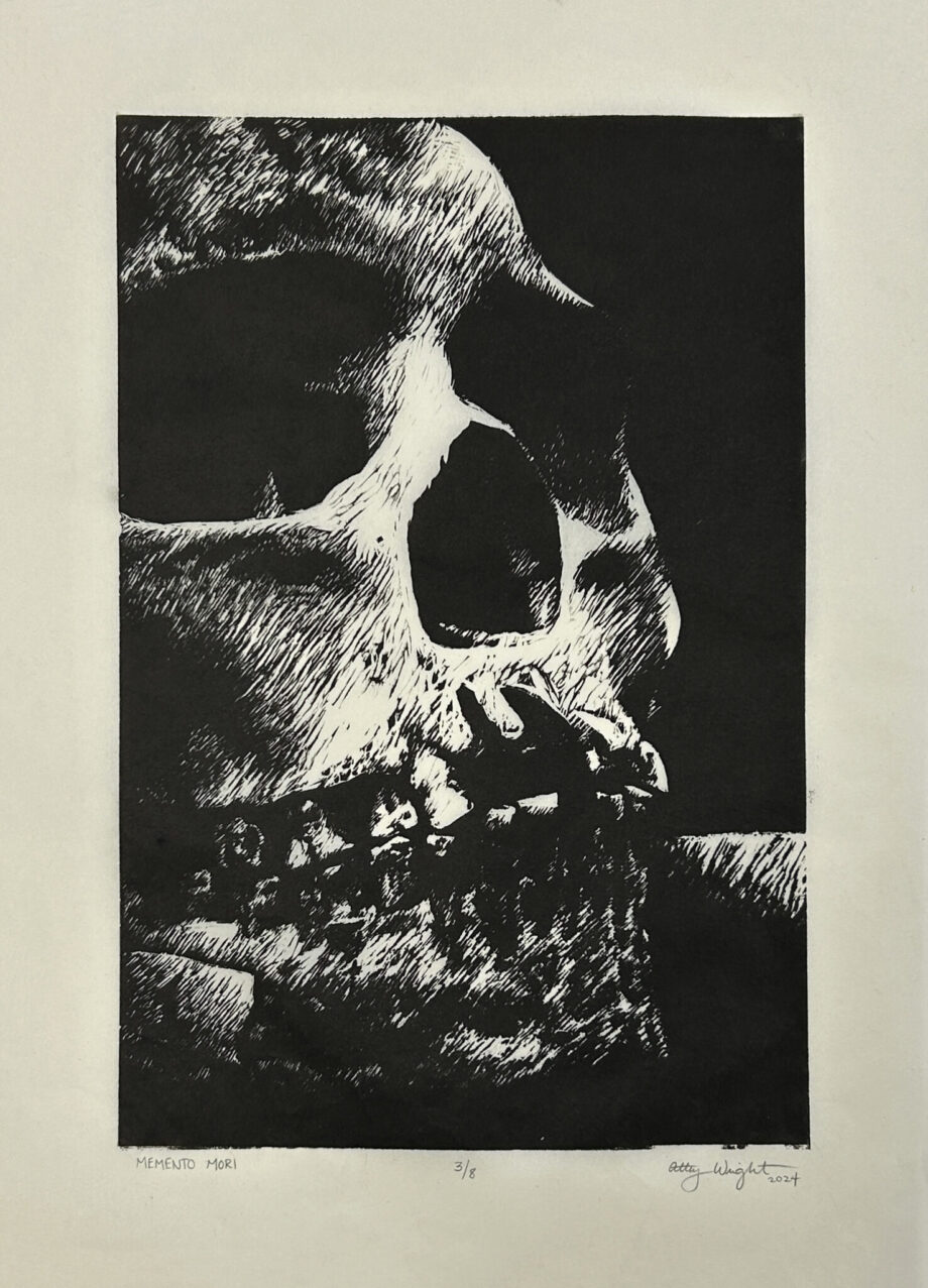 - Atley Wright, Momento Mori, Linoleum Relief Print