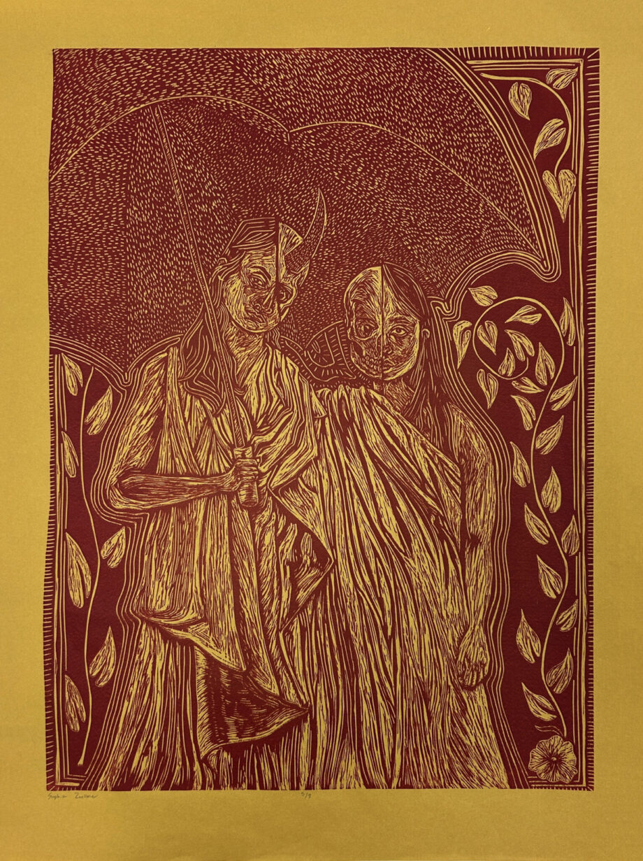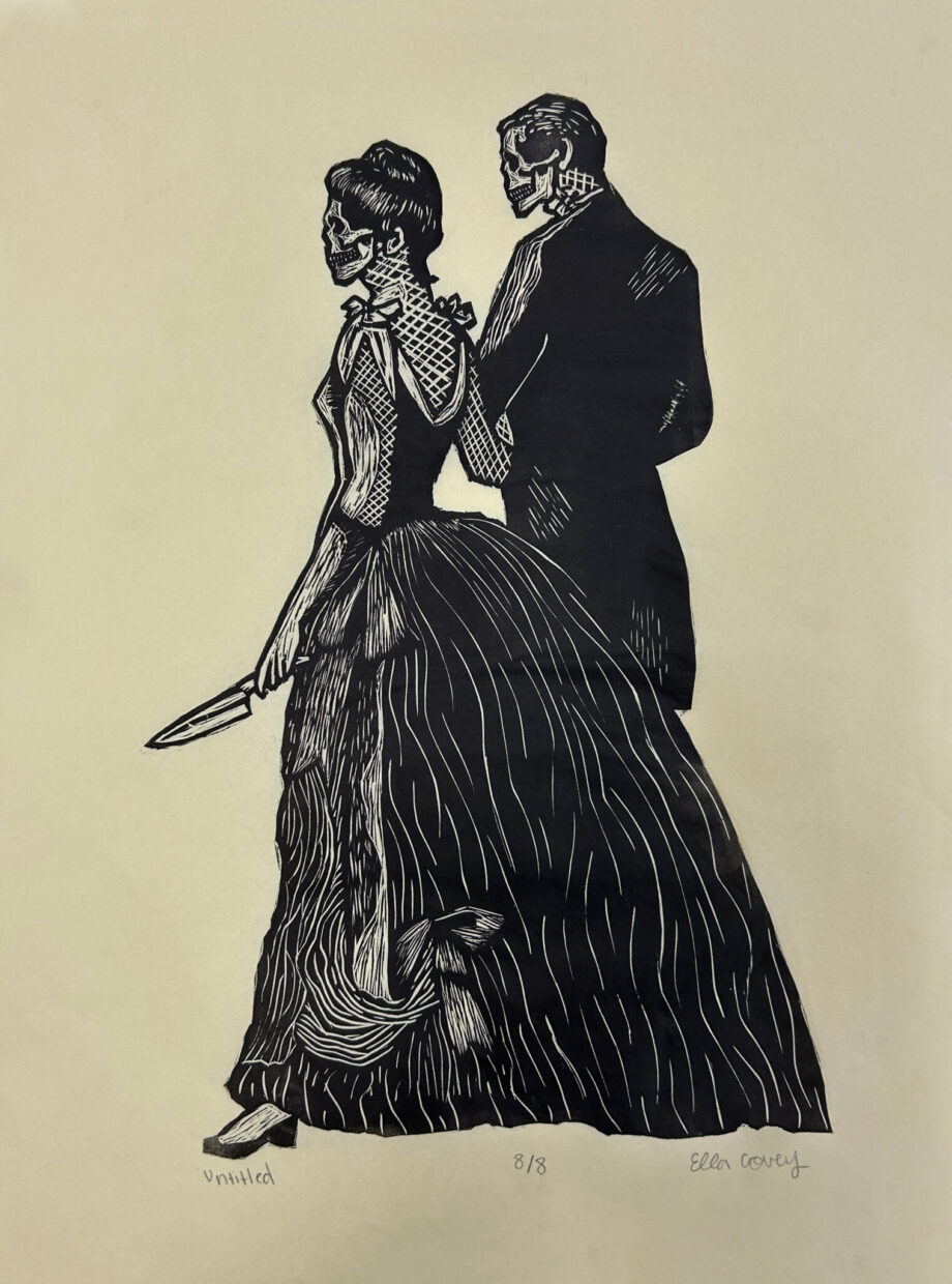 - Ella Covey, Untitled (Couple), Linoleum Relief Print