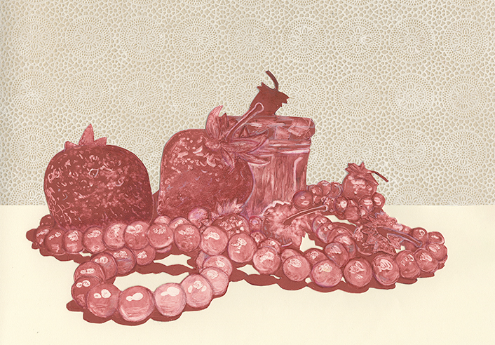 - Paige Beasecker, Betty, Single Color Monotype with Colored Pencil and Collage