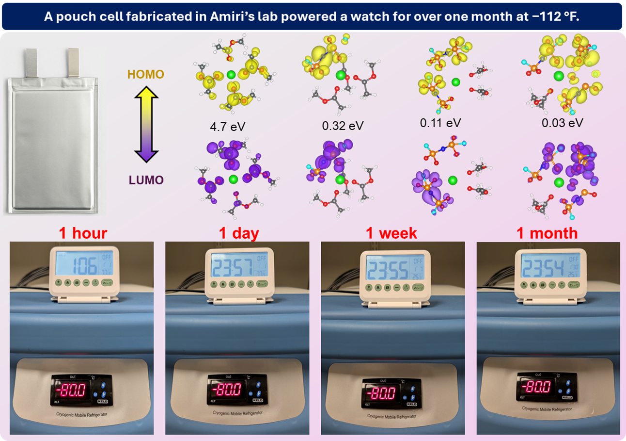 “Our team is developing a new class of dual-solvent electrolytes engineered at the molecular level to enhance lithium-ion transport, interfacial stability and overall performance under extremely low-temperature conditions,” explained Amiri. “This research is important to all organizations and companies because it enables reliable battery performance in extreme cold, expanding the reach of clean energy technologies, electric vehicles, aerospace systems and critical infrastructure anywhere on Earth with cold weather and in space.”